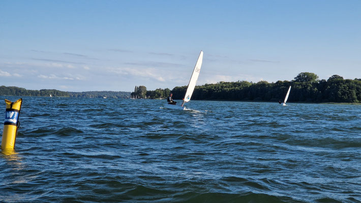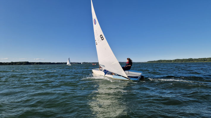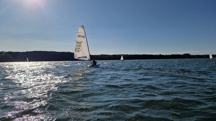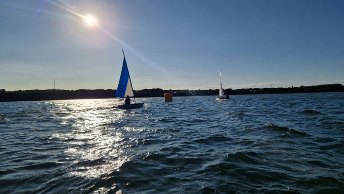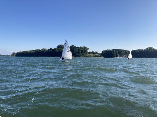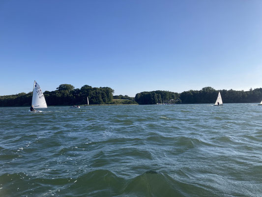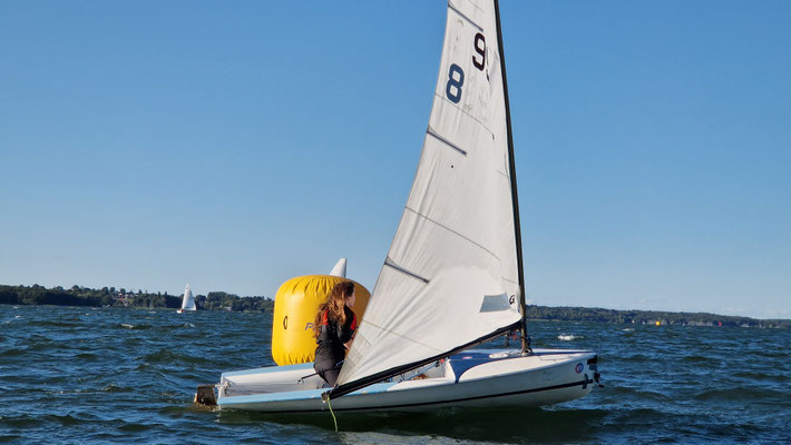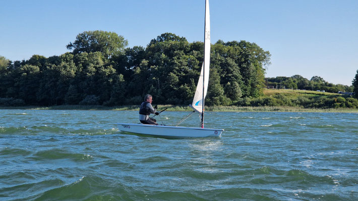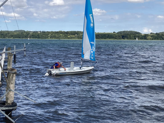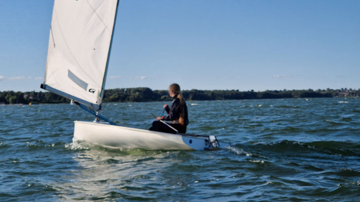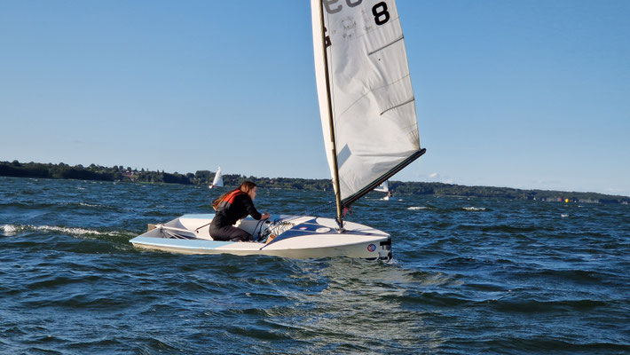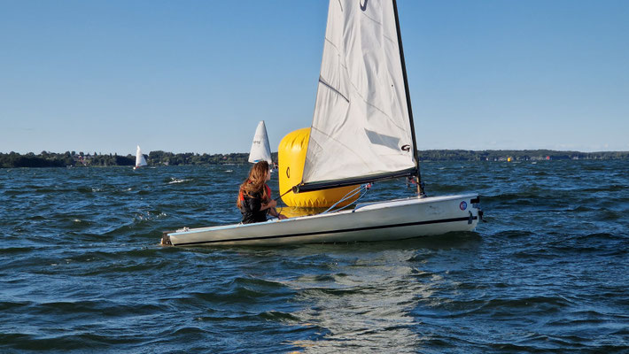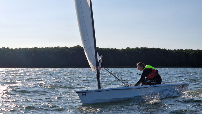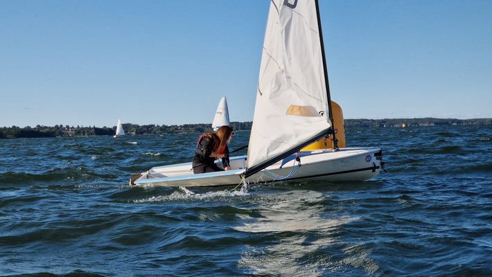 In kleinen Gruppen lernen Kinder zwischen 7 und 12 die Grundlagen der Bootsführung: Pinne halten und steuern, Segel setzen und fieren.
