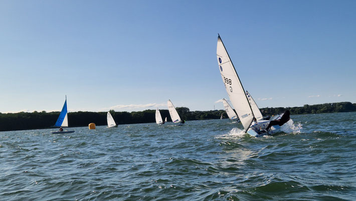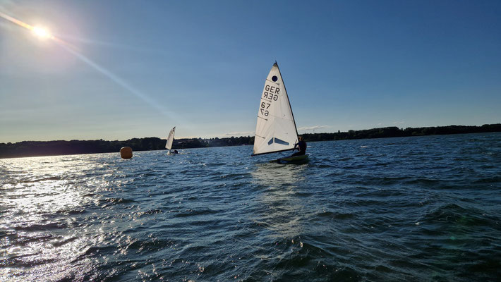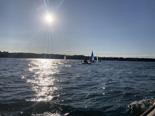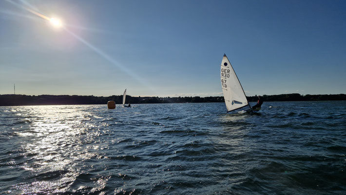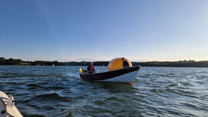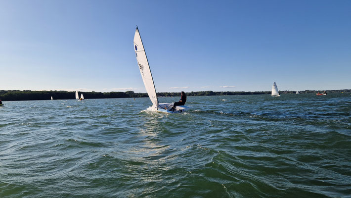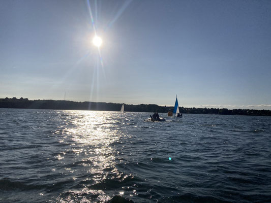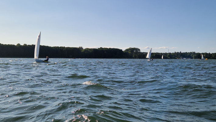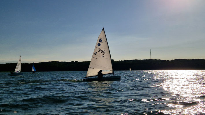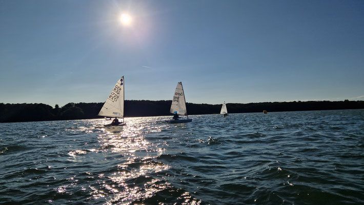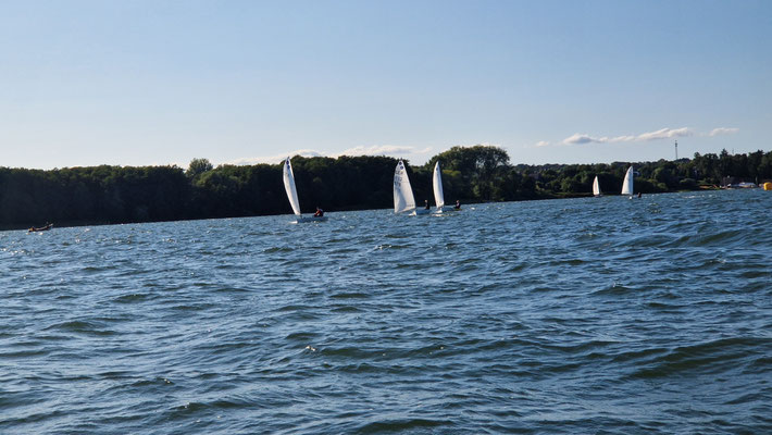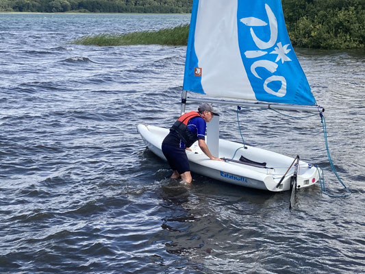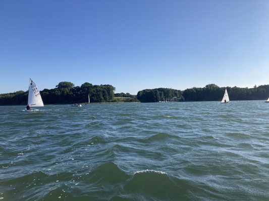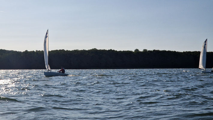 In kleinen Gruppen lernen Kinder zwischen 7 und 12 die Grundlagen der Bootsführung: Pinne halten und steuern, Segel setzen und fieren.