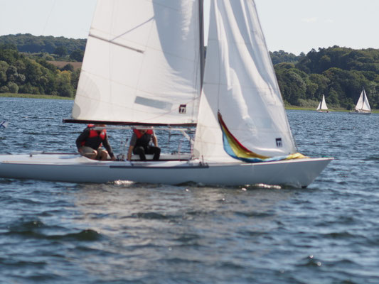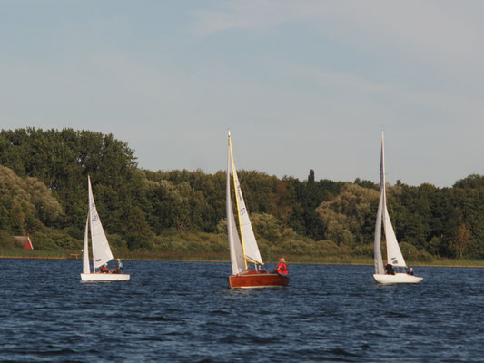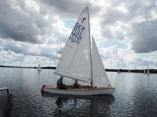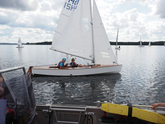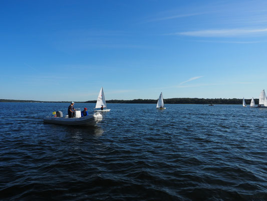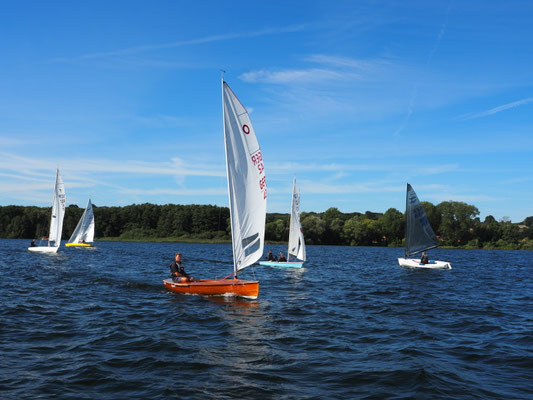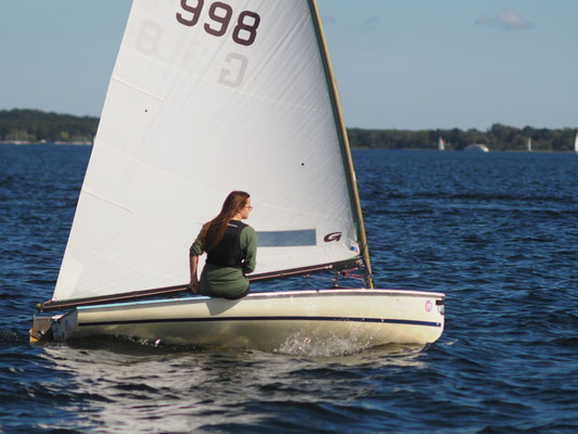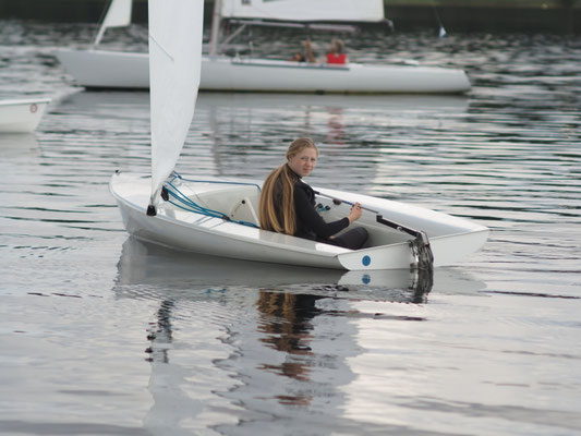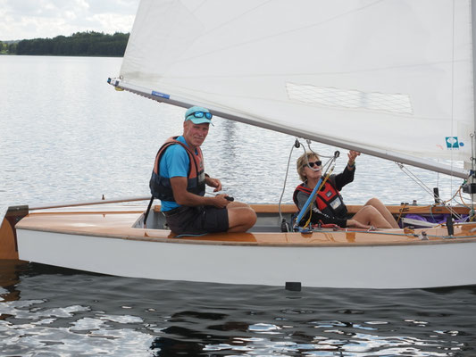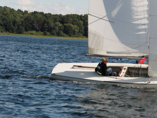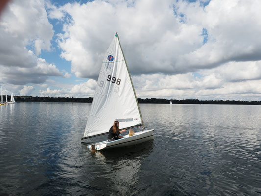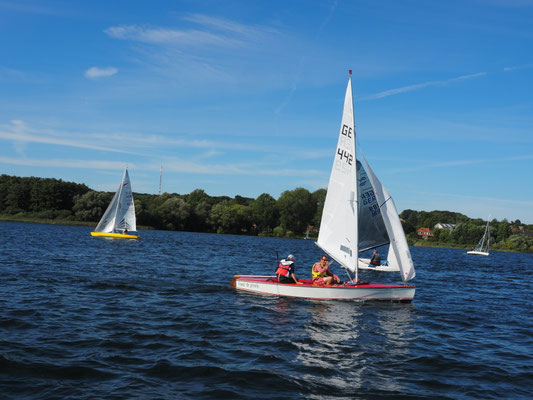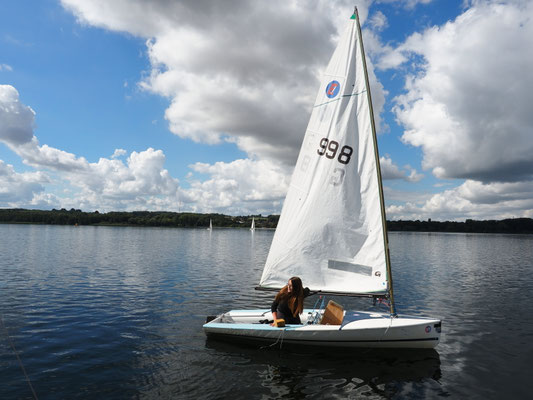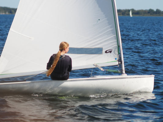 In kleinen Gruppen lernen Kinder zwischen 7 und 12 die Grundlagen der Bootsführung: Pinne halten und steuern, Segel setzen und fieren.