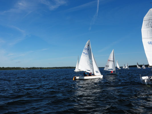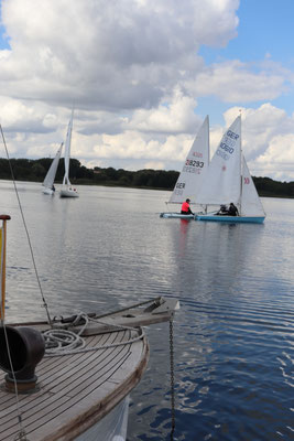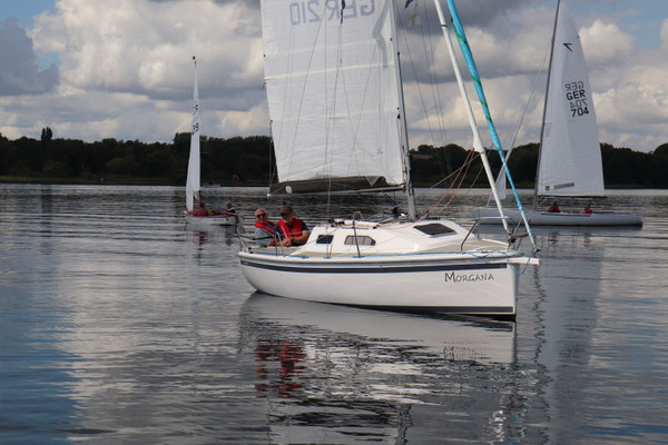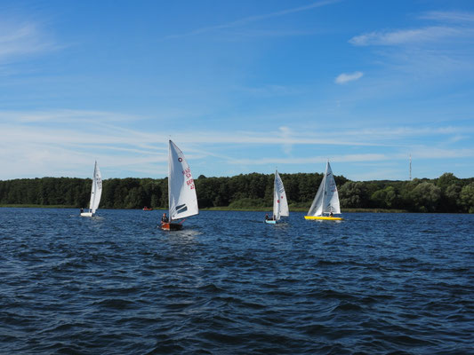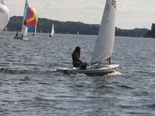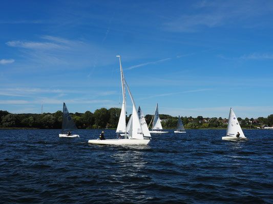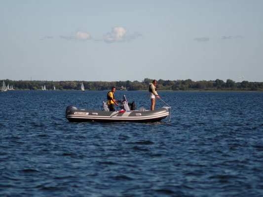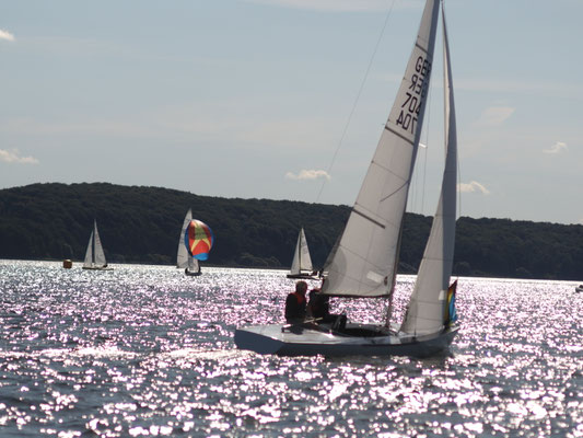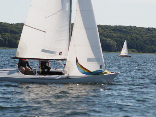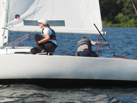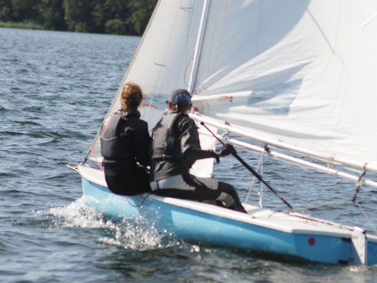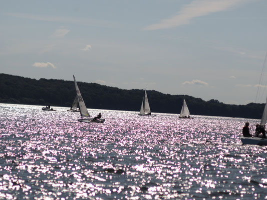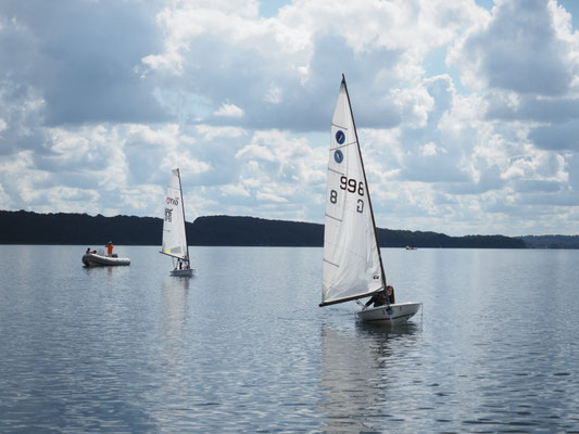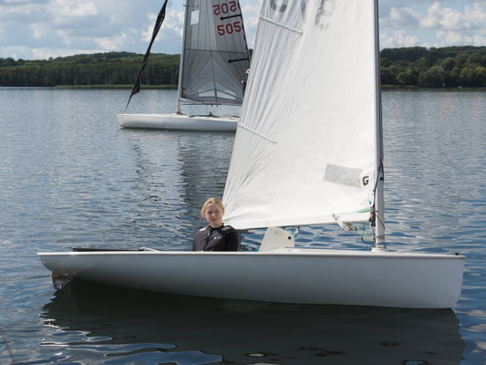 In kleinen Gruppen lernen Kinder zwischen 7 und 12 die Grundlagen der Bootsführung: Pinne halten und steuern, Segel setzen und fieren.